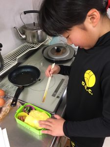 お弁当作り 風景 2019.04.16 H31.4.13 春のドッジ食育会に向けて 子供たち 朝から お弁当作り 頑張りました! 頑張り風景を ご紹介! 妹ちゃん 自由です(笑) 子供たち お疲れ様! 何よりも ママたち お疲れ様! 当日に向けて 子供への指導 頑張ったこと 想像に難くありません・・・ 1週間 ママ指導の下 みっちり練習を重ねた 卵焼き作りの成果 動画で お楽しみ下さい! 手に汗 握ります(笑) 2019.4.13 卵焼き