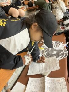 キッズちゃんたち リーグ表を埋める練習をしました