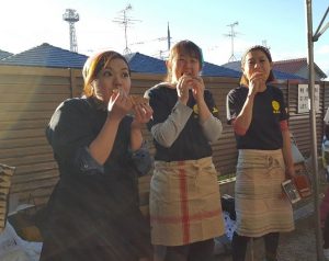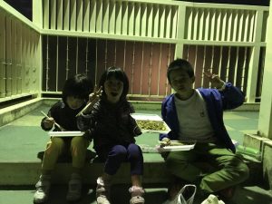 ソース かける前の つややかな 焼きそばおたふくソースに 身を包んだ 焼きそばKママからの差し入れブレイクタイムな 3人娘帰り道で・・・