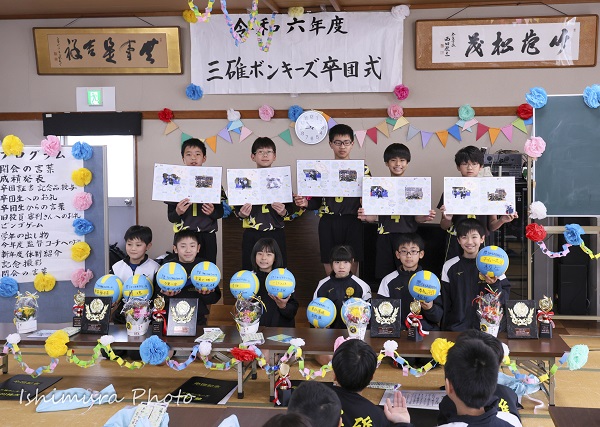 卒団式を行いました 2025.04.08 2025.3.30 卒団式 6年生をお祝いしました 旧6年から新6年へ バトンタッチ 恒例「チーム名ビンゴ」も 行われ 豪華景品の数々 園児は やっぱ ポケモンカード だよね💕 大人は やっぱ これだよね💕 お米 今 むっちゃ高いし(笑) 旧役員の皆さん お疲れ様でした お礼のお品 ボンキーズパン 素敵💕 最後 大集合写真 6年生 卒団 おめでとう!! これからの人生 幸多からんことを お祈りしています ちょこちょこ 遊びに来てね!