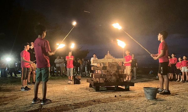 びわ湖畔で キャンプファイヤー