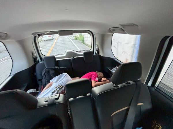 車に乗って 数分で バタンキュー