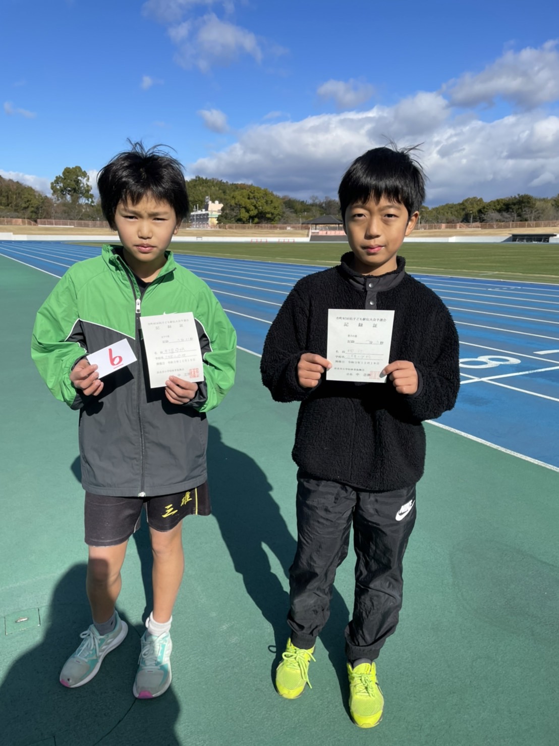 市町村対抗子ども駅伝大会予選会 出場 2022.01.01 2021.12.18 市町村対抗子ども駅伝大会予選会に チームで「自慢の足」を誇る2人が出場しました ほぼ 陸上部が占める中 きほちゃん 6位と 大健闘してくれました おめでとう 4位以上が選抜のため 残念ながら 予選落ちでしたが ドッジボールチームで 陸上部に匹敵する力を 見せてくれて 誇らしい気持ちです