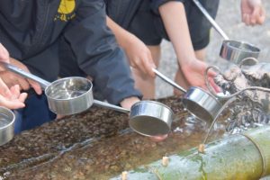 2023.5.21いきいきランド交野にて練習試合新緑の季節朝のアップ中の 部員たち傍らで 自然に親しむ 弟ちゃんと妹ちゃんたち癒しの存在