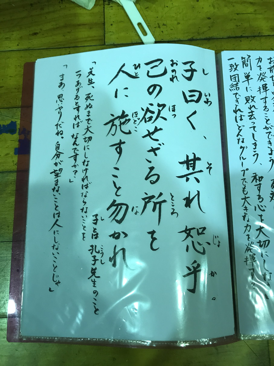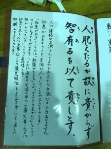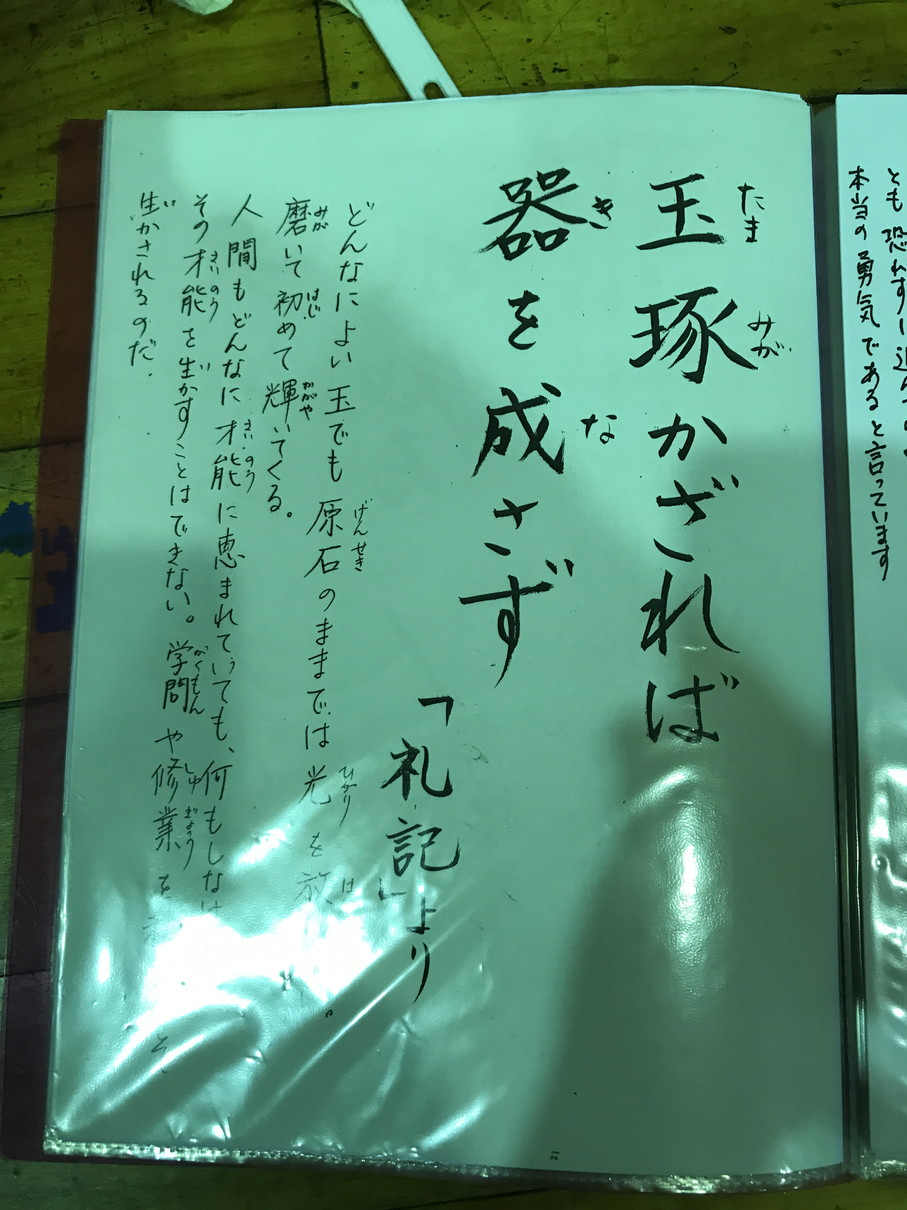暗唱名文を紹介します 2017.09.07 H29.8.31 ボンキーズ恒例 暗唱大会 監督からの 強いリクエスト? により(笑) 暗唱名文を 紹介しますね こんなに 難しい文章なのに 子供たち 本当に よく頑張りました(^o^) ライトの反射等 雑な写メ ご容赦下さいね