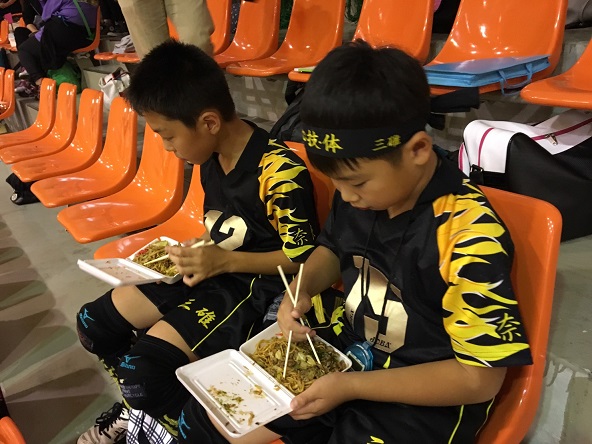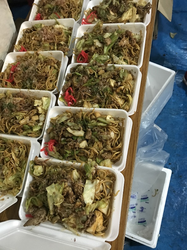 翌日の昼食は? 2017.10.17 H29.10.14 秋祭り 焼きそば 材料が余ったので 翌日の オータムシップ 早朝出発だし 昼食 お弁当は 焼きそばに しちゃえ!ってことに なり 通常仕様の焼きそばに さらに 具材を追加 (上の写真は 具材だけ 焼いた様子) これは 何だか もんじゃ焼き?? これを 35等分してくださぁい と指示が入り 無理 出来るかっ! そんなん テキトウ テキトウ 焼きそば ボリュームアップ 翌日の H29.10.15 名張にて オータムシップ 焼きそばな 昼食風景スゴい オムそばやん 工夫されてる!
