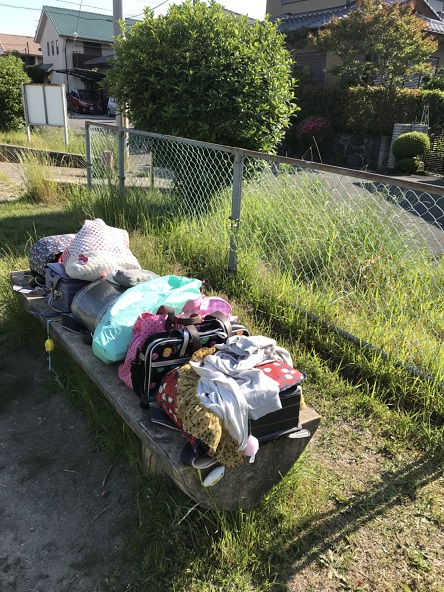 ベンチに 置かれた ランドセル