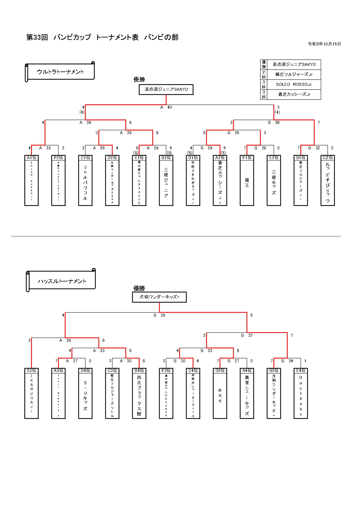 バンビの部 予選リーグ2位 上位トーナメント進出!