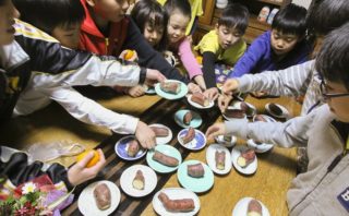 H28.12.13監督の家で ビデオミーティング食育に 力を入れている 監督おやつも さすがです!ふかし芋 と みかん群がる子供たちむさぼる子供たちこんなに 小皿があることが スゴイ!