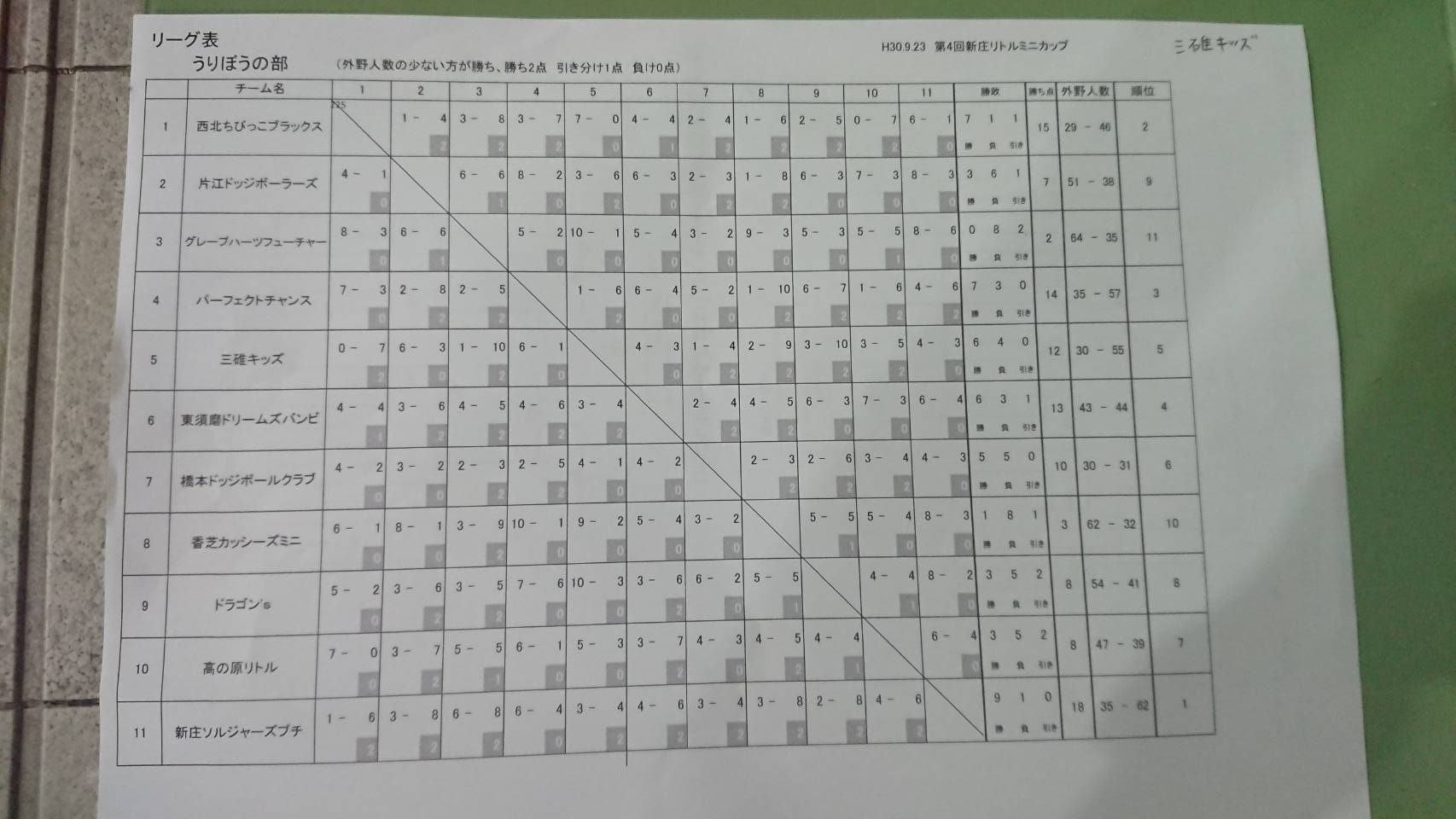【リーグ戦試合結果】 6~12人制のため外野人数でのスコアです。